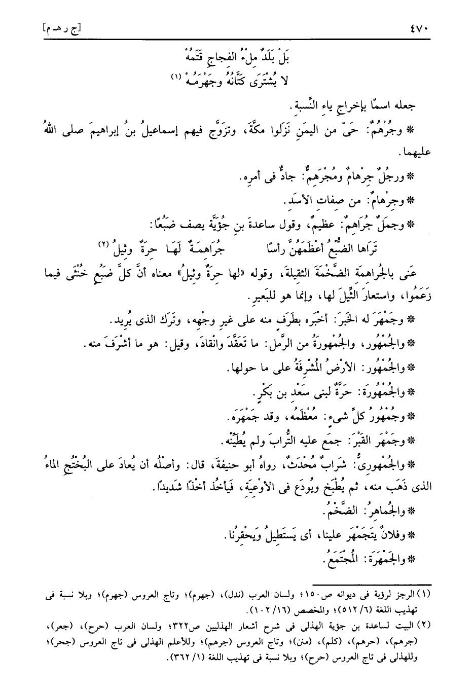 وجمل جُرَاهِمٌ: عَظِيم، وَقَول سَاعِدَة ابْن جؤية يصف ضبعا: