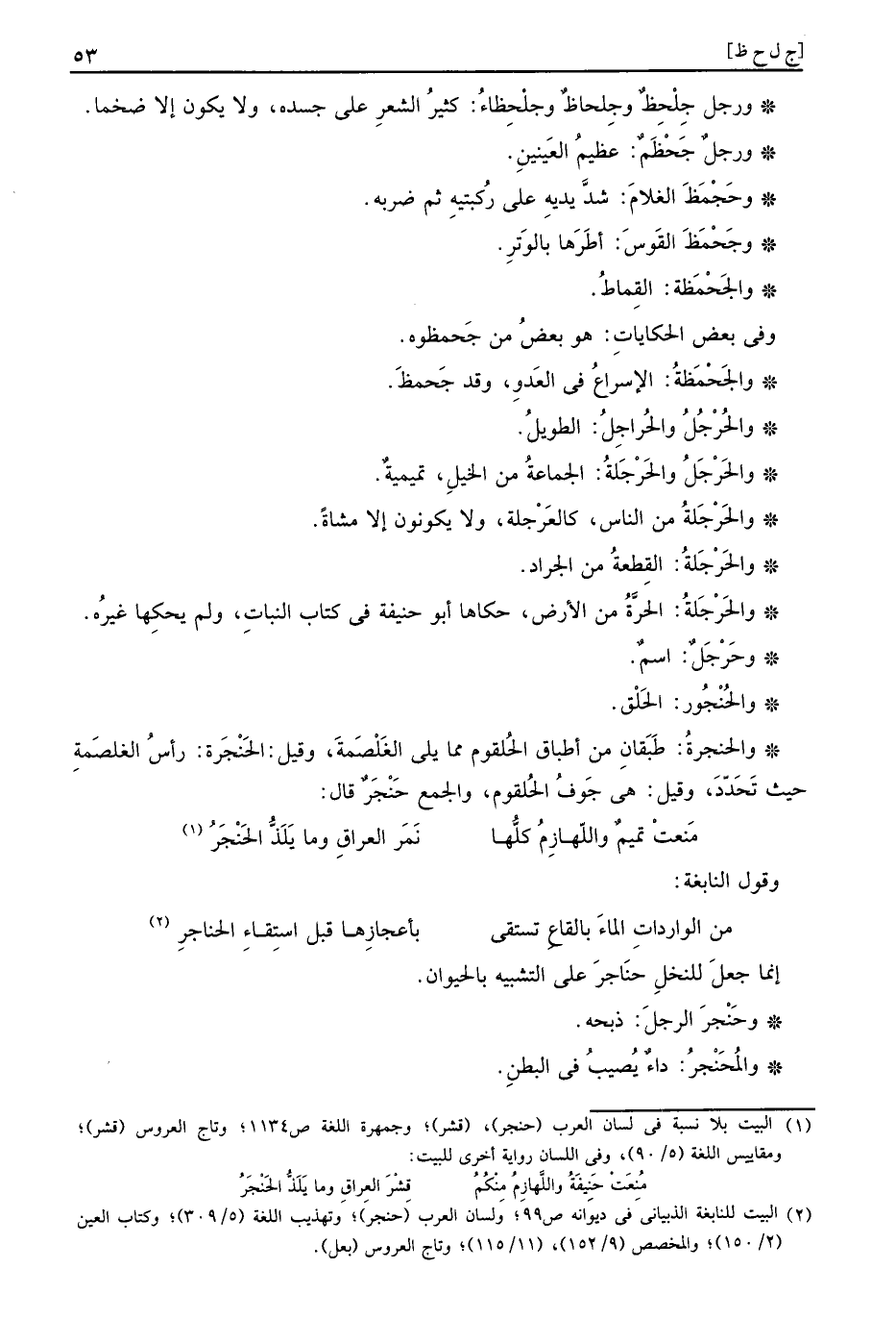 مَنعتْ تميمٌ واللهازِمُ كلُّها ... نَمرَ العراقِ وَمَا يَلَذُّ الحَنْجَرُ