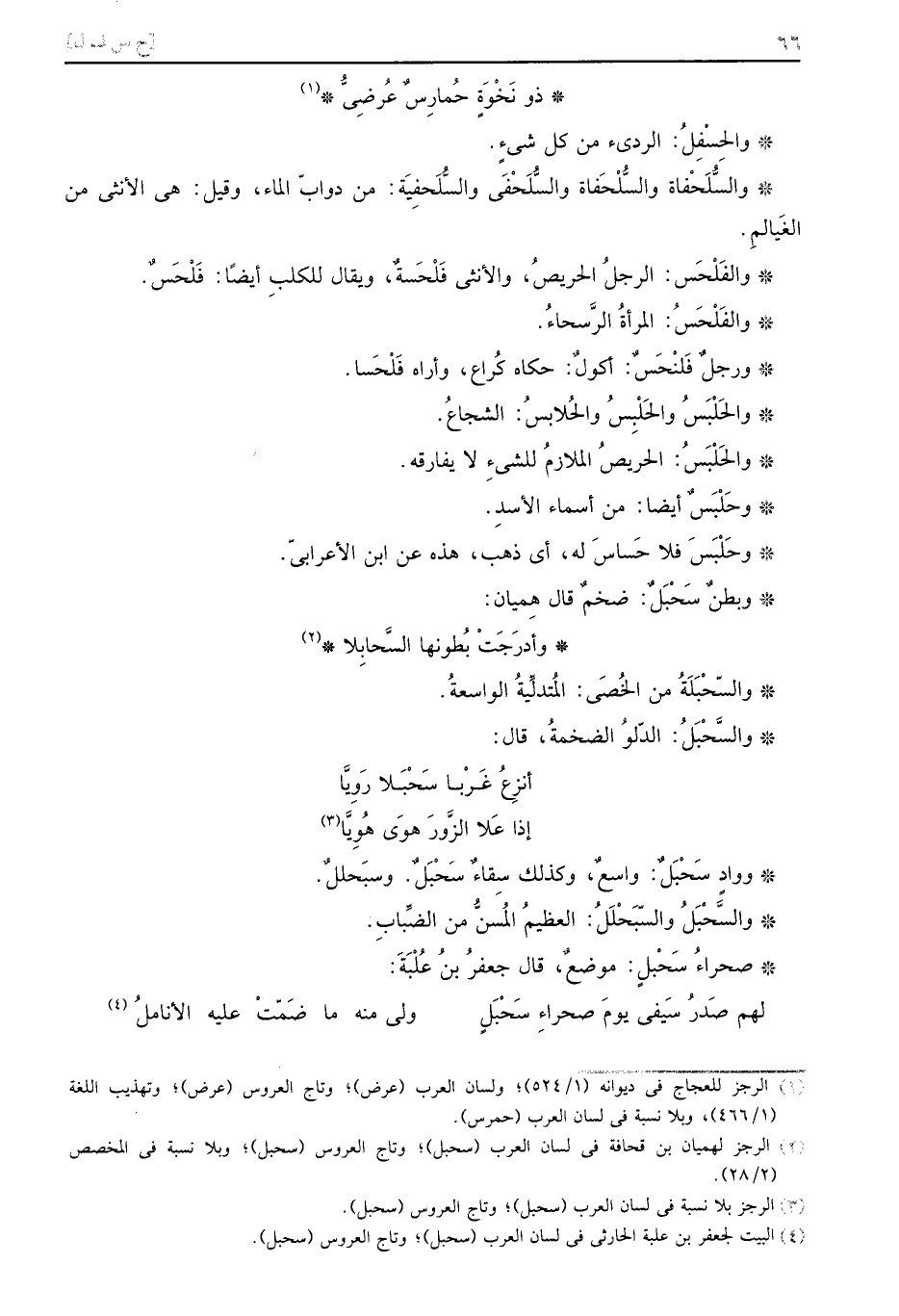 وبطن سَحْبَلٌ: ضخم قَالَ هميان: