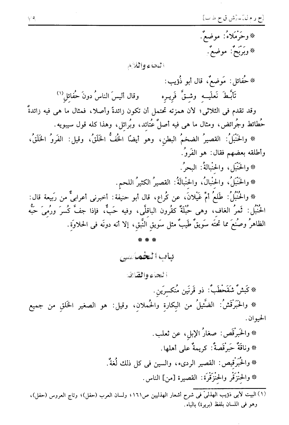 والحُبَرْقِيص: الْقصير الرَّدِيء، وَالسِّين فِي كل ذَلِك لُغَة.