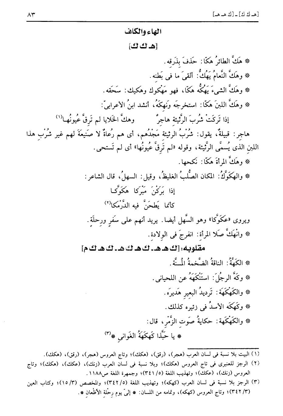 والهَكَوَّكُ: الْمَكَان الصلب الغليظ، وَقيل: السهل، قَالَ الشَّاعِر: