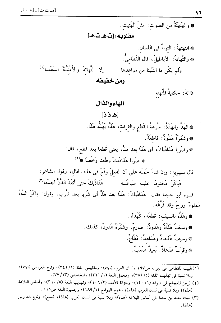 والتَّهاتِهُ: الأباطيل، قَالَ الْقطَامِي:
