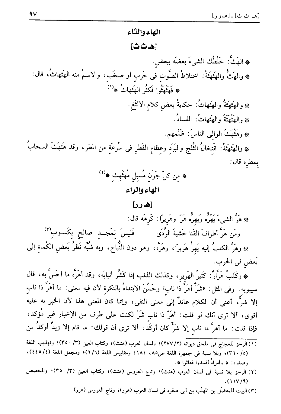 هَرَّ الشَّيْء يَهُرُّه ويَهِرُّه هَرًّا وهَرِيرًا: كرهه قَالَ: