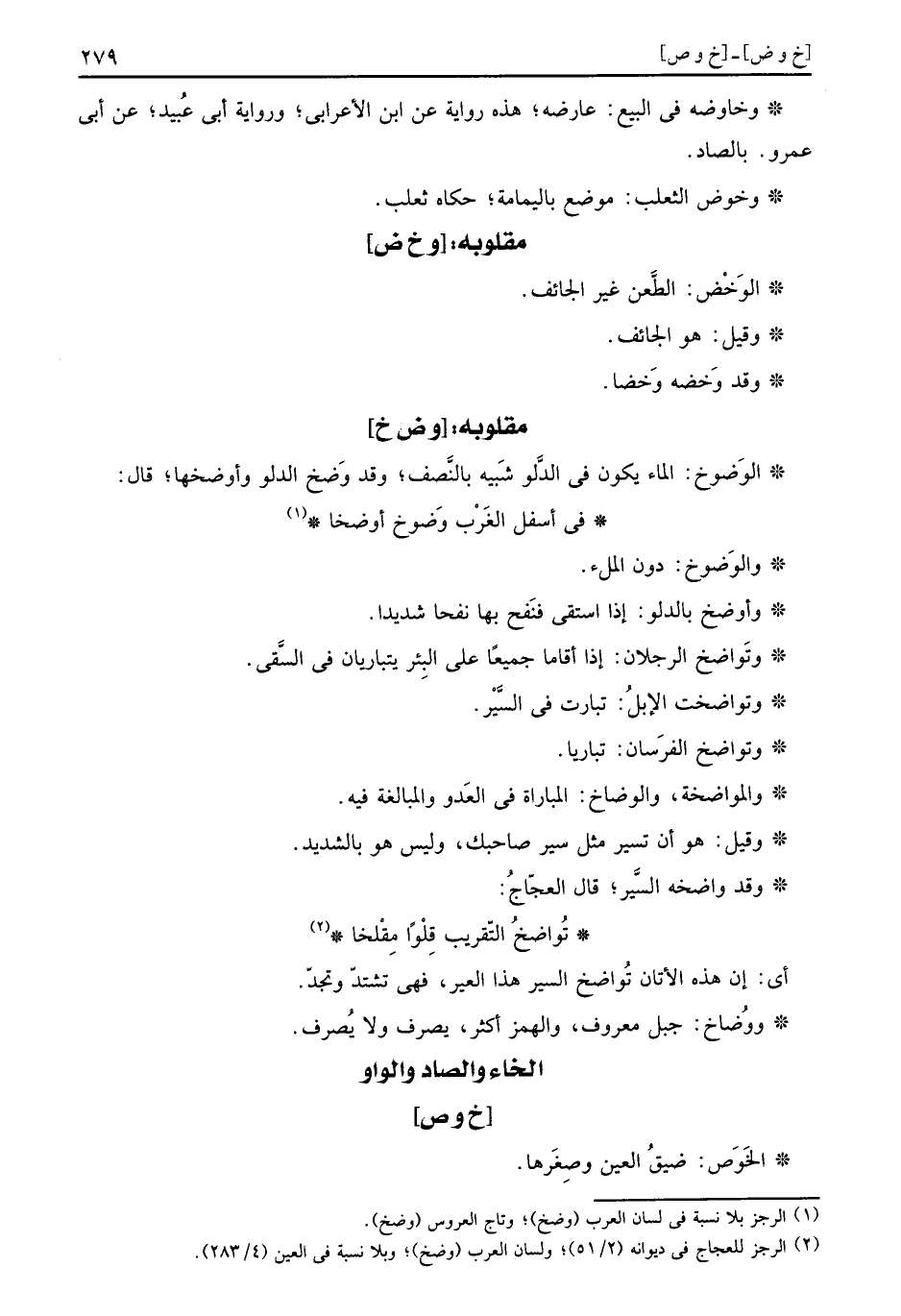 وخاوضه فِي البيع: عَارضه، هَذِه رِوَايَة عَن ابْن الاعرابي، وَرِوَايَة أبي عبيد، عَن أبي عَمْرو. بالصَّاد.