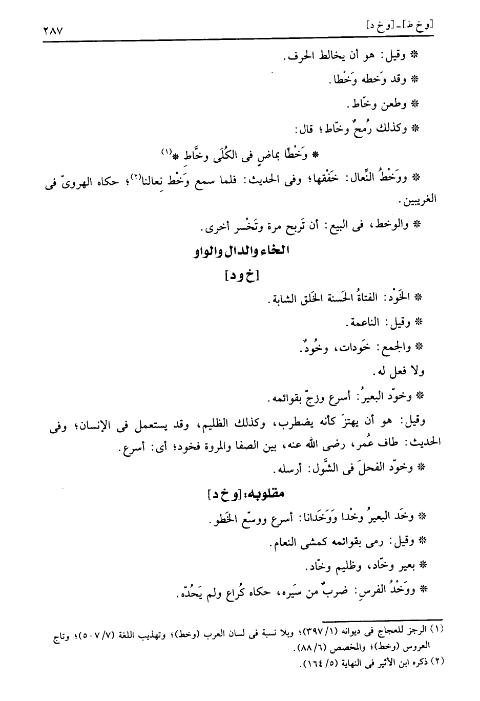 وخّود البعيرُ: أسْرع وزجّ بقوائمه.