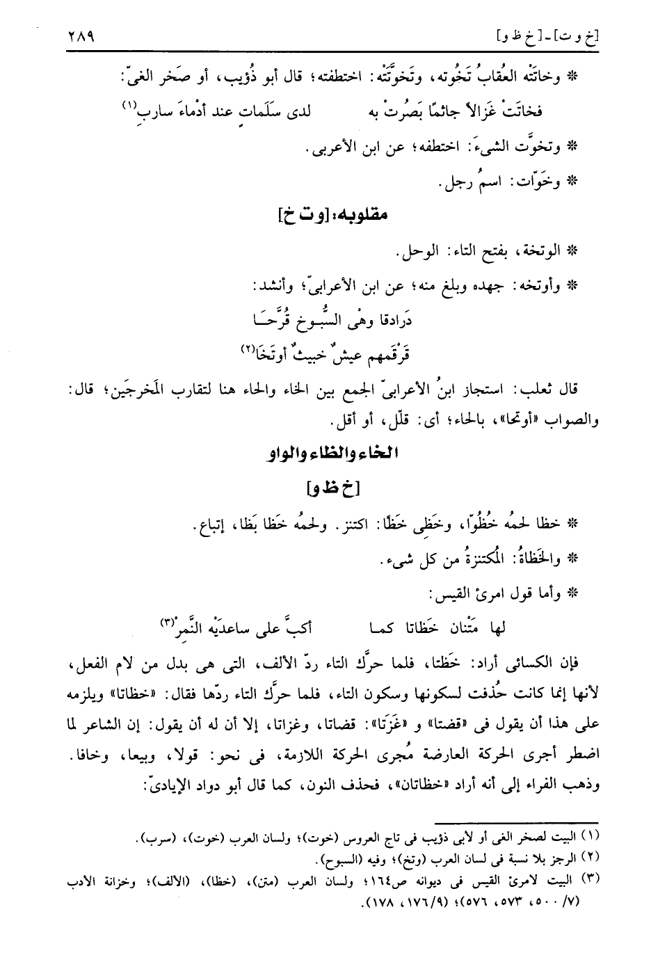 وَذهب الْفراء إِلَى انه أَرَادَ " خظاتان "، فَحذف النُّون، كَمَا قَالَ أَبُو دَاوُد الْإِيَادِي: