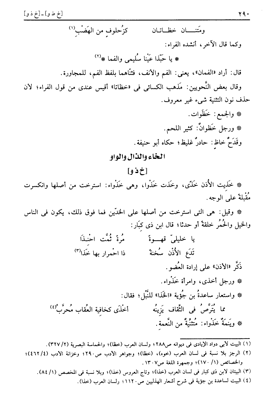 وَقَالَ بعض النَّحويين: مَذهب الْكسَائي فِي " خظاتا " اقيس عِنْدِي من قَول الْفراء، لِأَن حذف نون التَّثْنِيَة شَيْء غير مَعْرُوف.