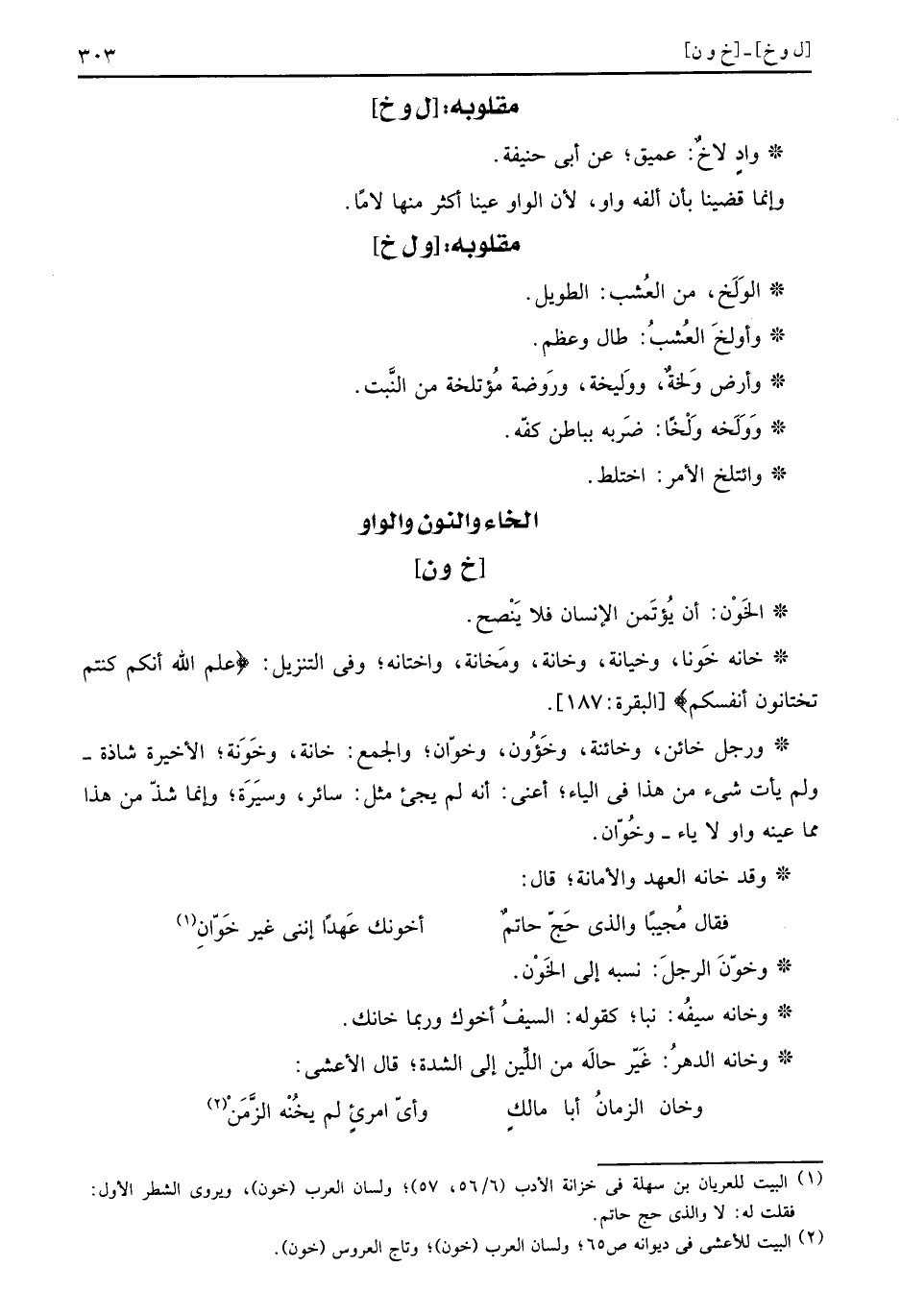 وخوّنَ الرجلَ: نسبه إِلَى الخَوْن.