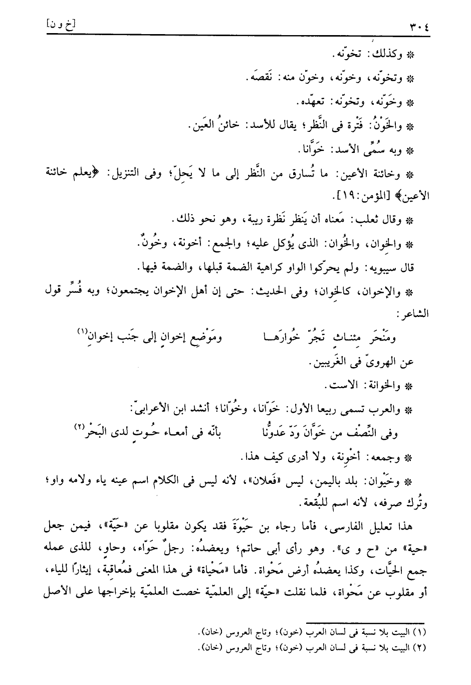 والخَوْنُ: فَتْرة فِي النَّظر، يُقَال للأسد: خائنُ العَين.