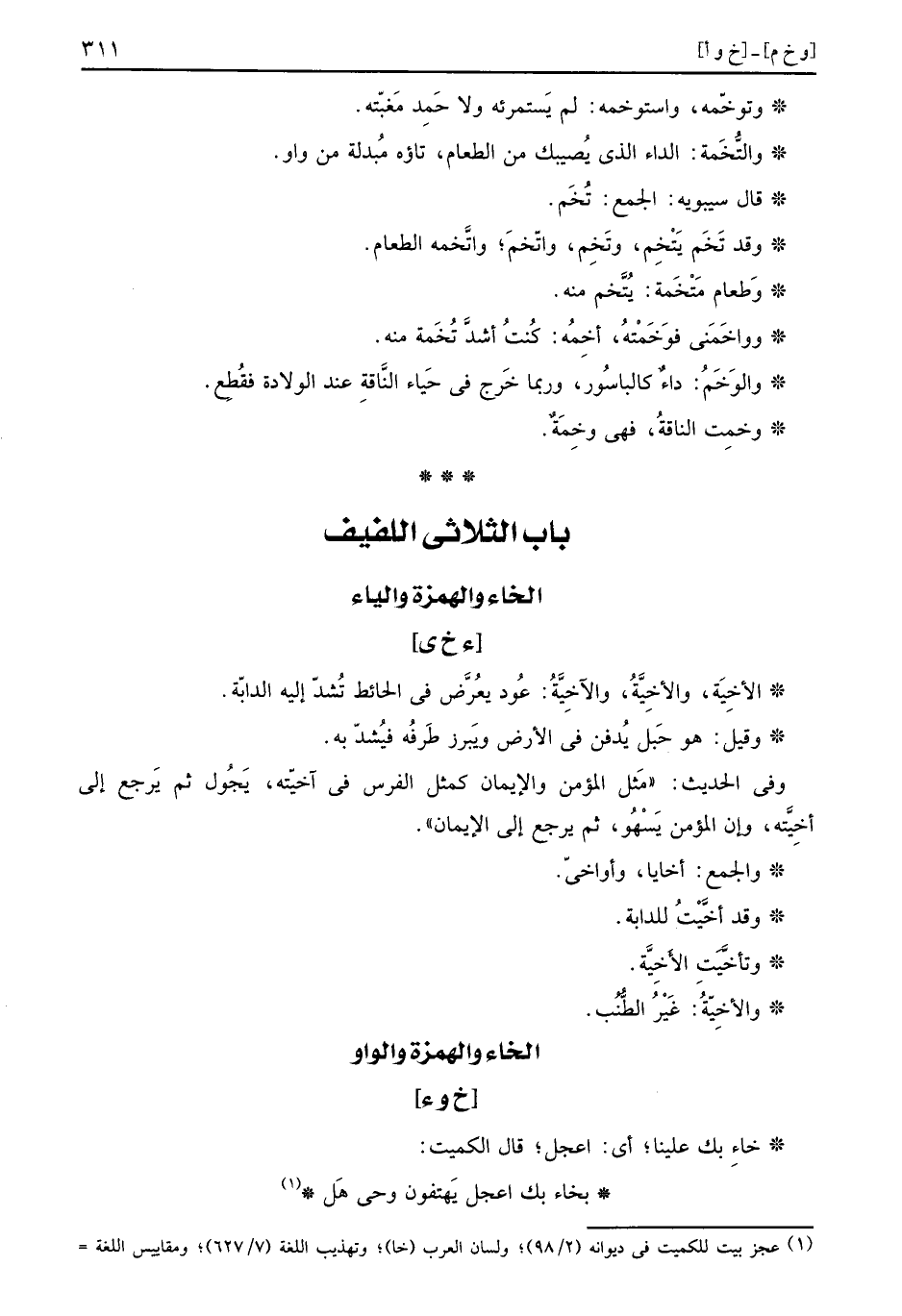 خاءِ بك علينا، أَي اعجل، قَالَ الْكُمَيْت: بخاء بك اعجل يَهتفون وَحي هَل