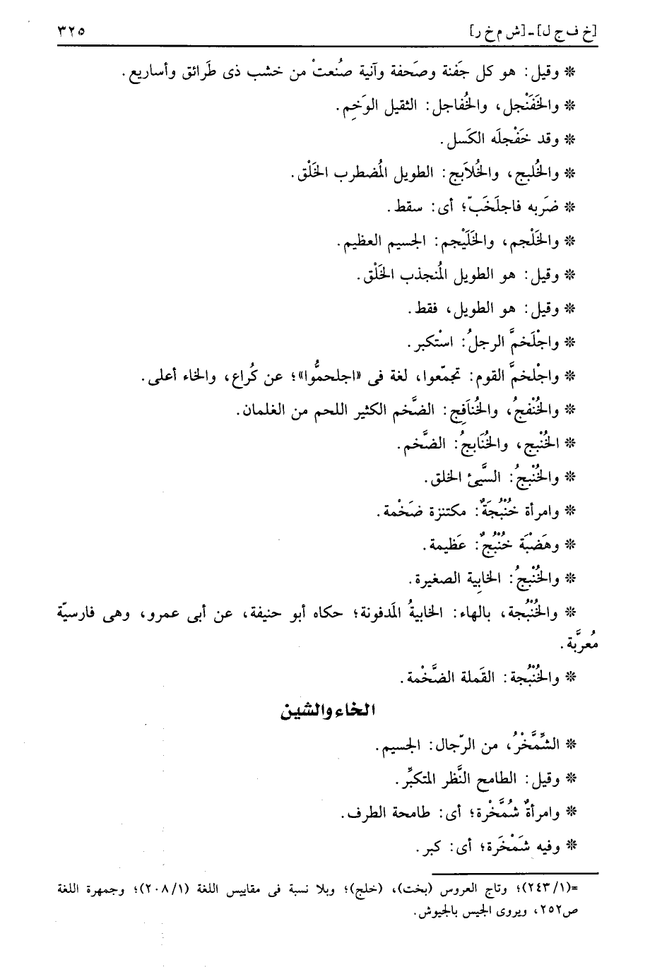 والخَلْجم، والخَلَيْجم: الجسيم الْعَظِيم.