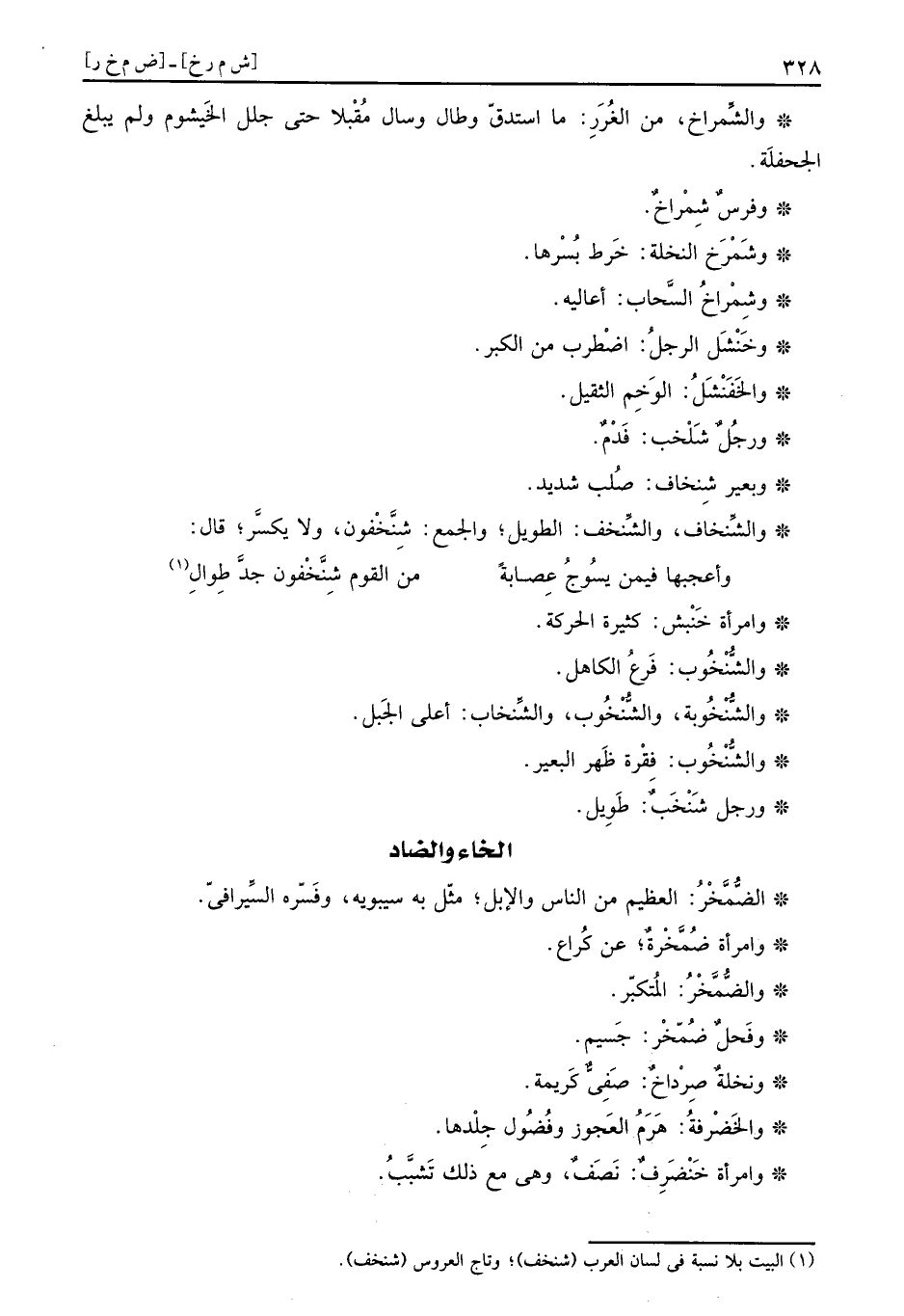والشُّنْخُوب: فَرعُ الْكَاهِل.