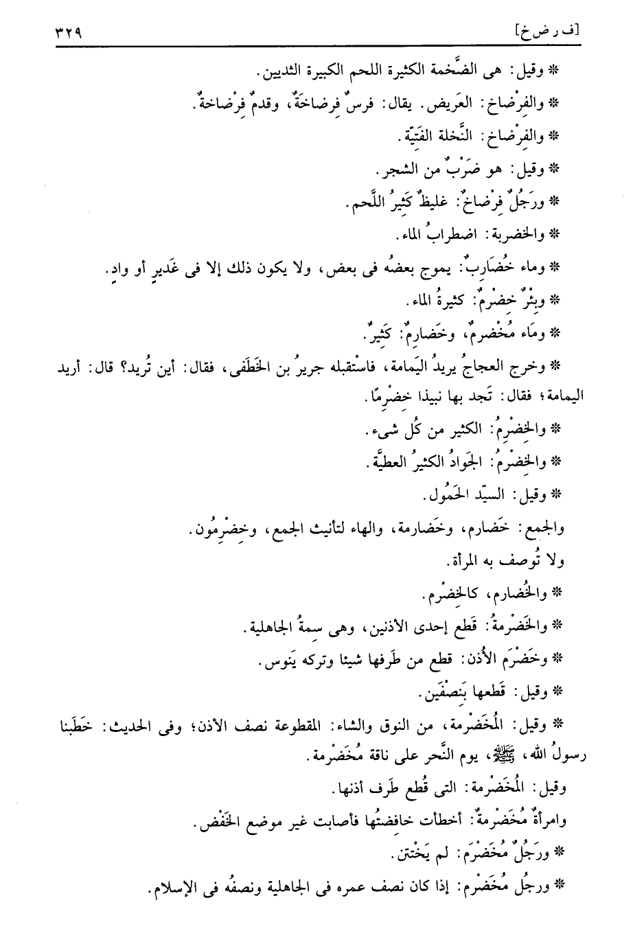 ومَاء مُخْضرمٌ، وخُضارِمٌ: كَثِيرٌ.