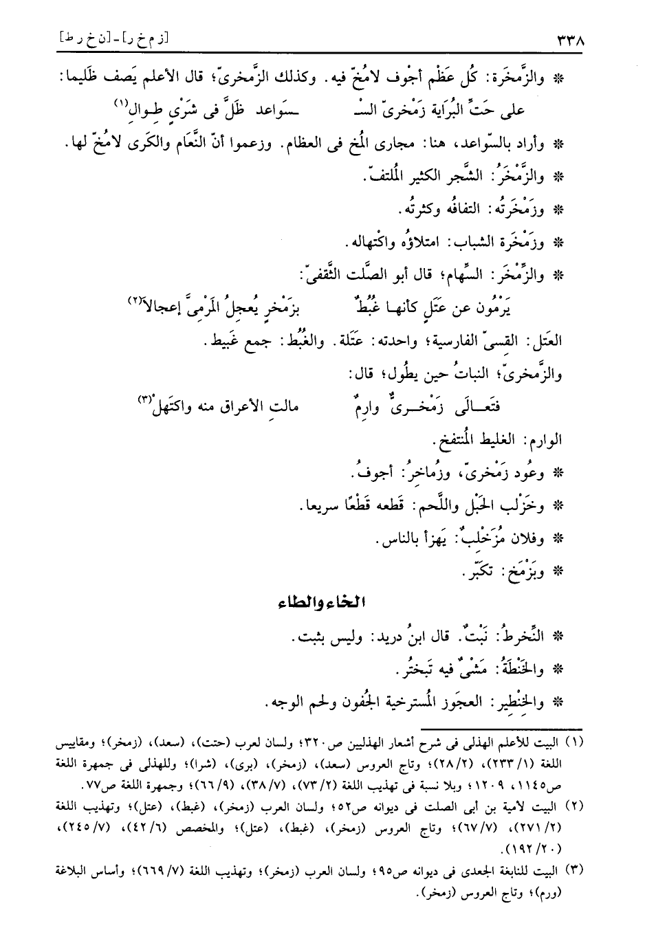 على حَتٍّ البُرَاية زَمْخريّ الس وَاعد ظَلَّ فِي شَرْىٍ طِوالِ
