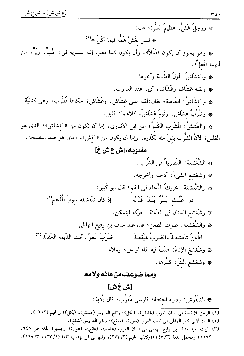 ورجلٌ غَشُّ: عظيمُ السُّرة، قَالَ: لَيْسَ بِغَش هَمُّه فِيمَا أكَلْ.