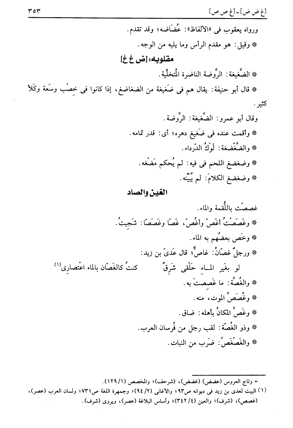 ورجلٌ غصَانُ: غاصُّ، قَالَ عَديّ بن زيد: