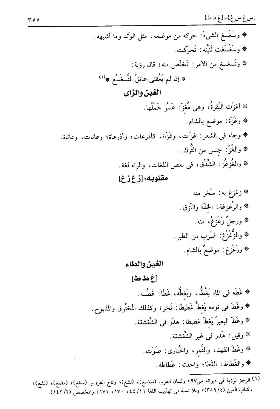 وتَسغسغ من الْأَمر: تَخلّص مِنْهُ، قَالَ رؤبة: إِن لم يَعُقني عائقُ التَّسّغْسُغ