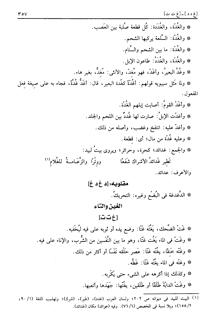 وَالْجمع: غدائد، كحرة، وحرائر، ويروى بيتُ لبيد: