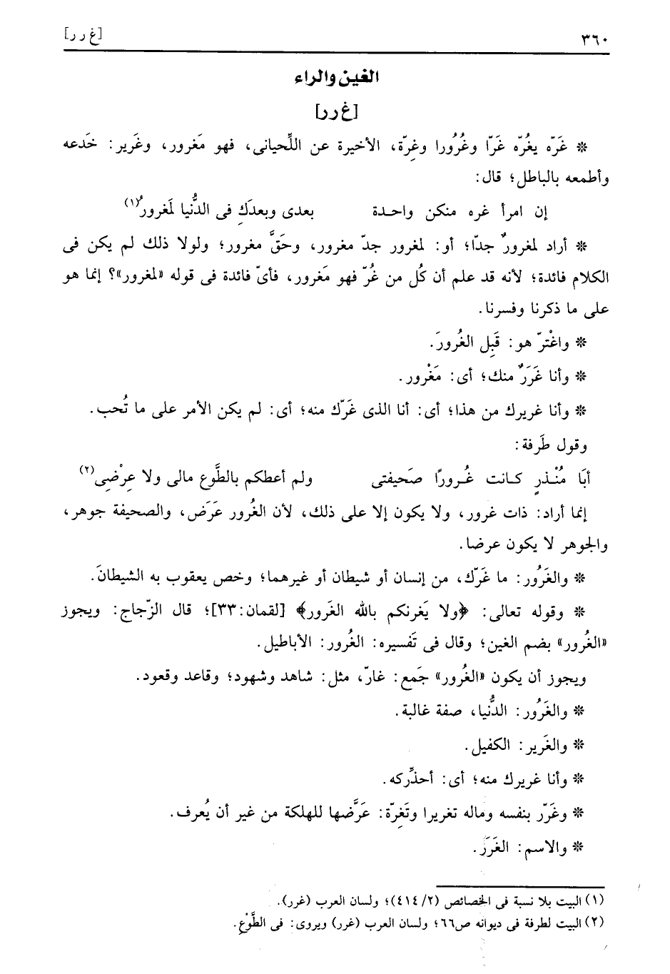 وَقَوله تَعَالَى: (ولَا يَغرنكم بِاللَّه الغَرور) ، قَالَ الزّجاج: وَيجوز " الغُرور " بِضَم الْغَيْن، وَقَالَ فِي تَفسيره: الغُرور: الأباطيل.