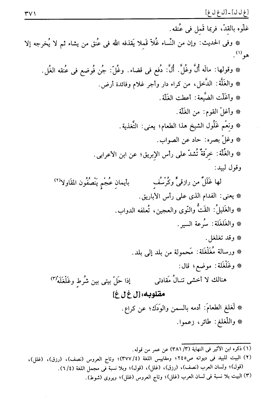ونِعْم غَلُول الشَّيْخ هَذَا الطَّعَام، يَعْنِي: التَّغذية.
