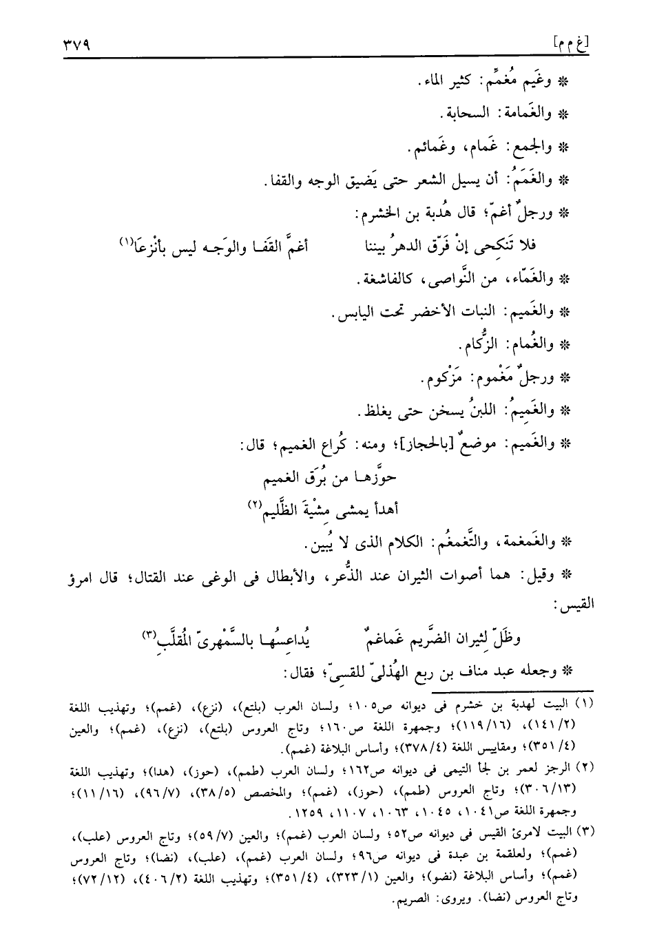 وظَلّ لِثيران الضَّريم غَماغمٌ يُداعِسُها بالسَّمْهريّ المُقلَّب