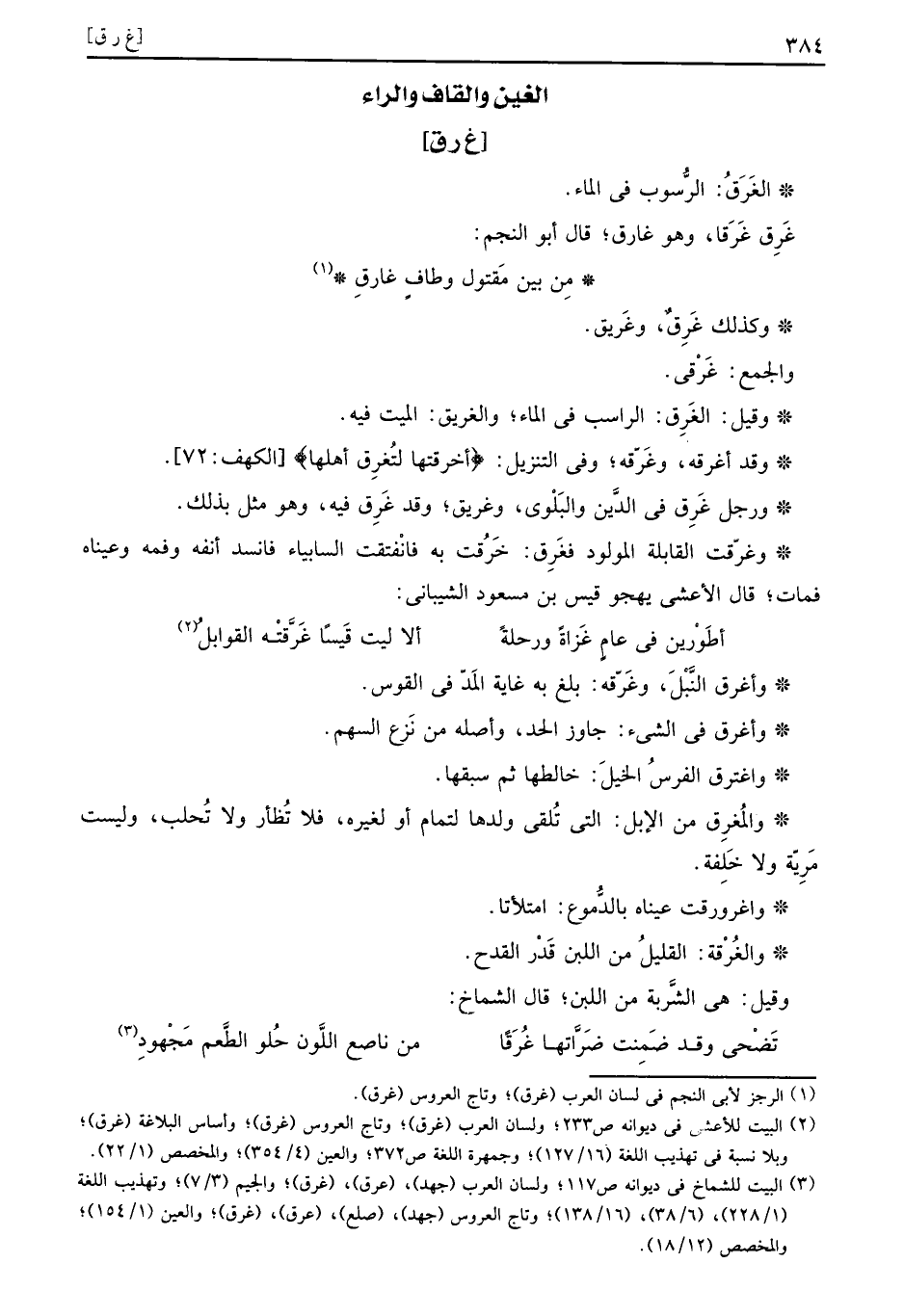 غَرِق غَرَقا، وَهُوَ غارق، قَالَ أَبُو النَّجْم: من بَين مَقتول وطافٍ غارقِ وَكَذَلِكَ غَرِقٌ، وغَريق.