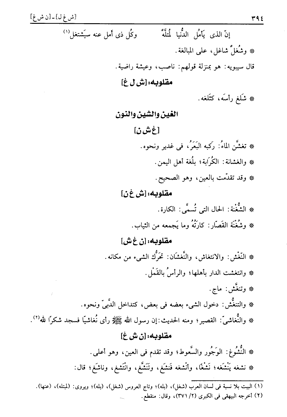مقلوبه: (ن ش غ)