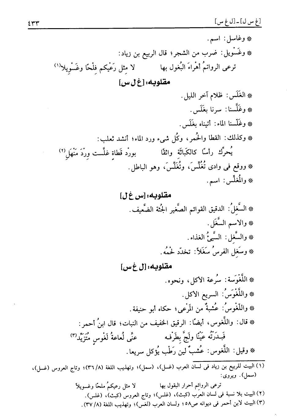 وغَسْويل: ضرب من الشّجر، قَالَ الرّبيع ابْن زِيَاد: