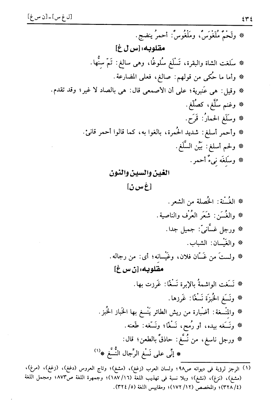 ولَحْمُ مُلَغْوَسٌ، ومَلْغُوسٌ: احمرُ ينضج.