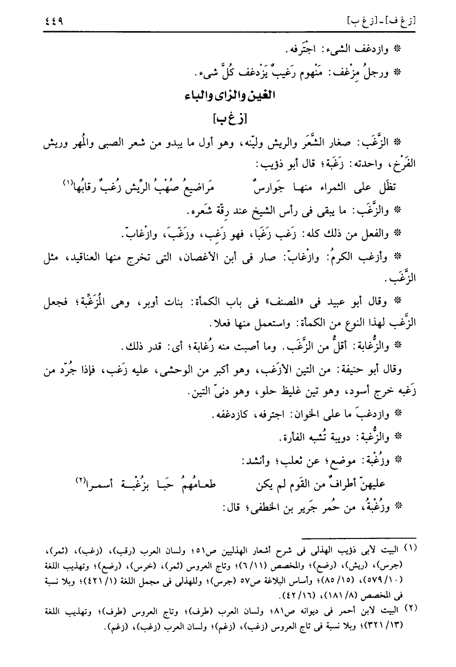 وَقَالَ أَبُو عبيد فِي " المُصَنّف " فِي بَاب الكمأة: بَنَات اوبر، وَهِي المُزَغِّبة، فَجعل الزَّغب لهَذَا النَّوْع من الكمأة: وَاسْتعْمل مِنْهَا فعلا.