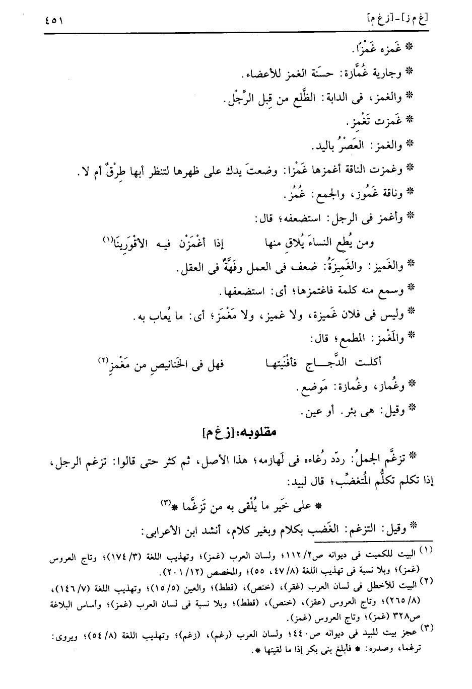 مقلوبه: (ز غ م)