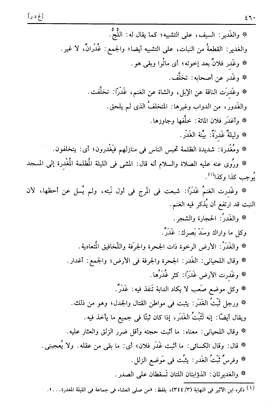 وَقَالَ اللحياني: الغَدر: الجحرة والجرفة فِي الارض، وَالْجمع: أغدار.