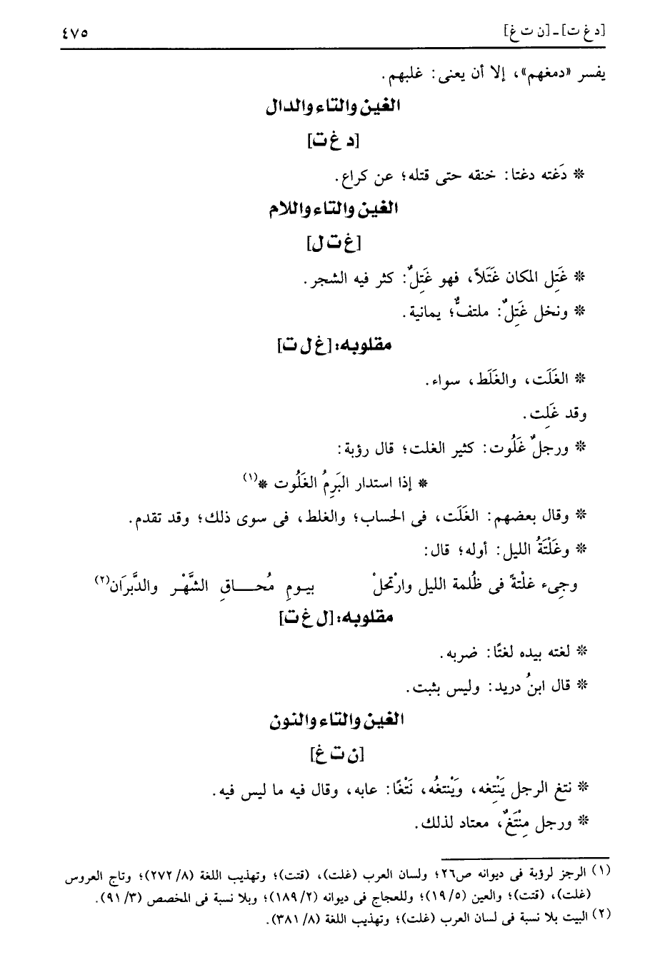 ورجلٌ غَلُوت: كثير الغلت، قَالَ رؤبة: إِذا اسْتَدَارَ البَرِمُ الغَلُوت وَقَالَ بَعضهم: الغَلَت، فِي الْحساب، والغلط، فِي سوى ذَلِك، وَقد تقدم.