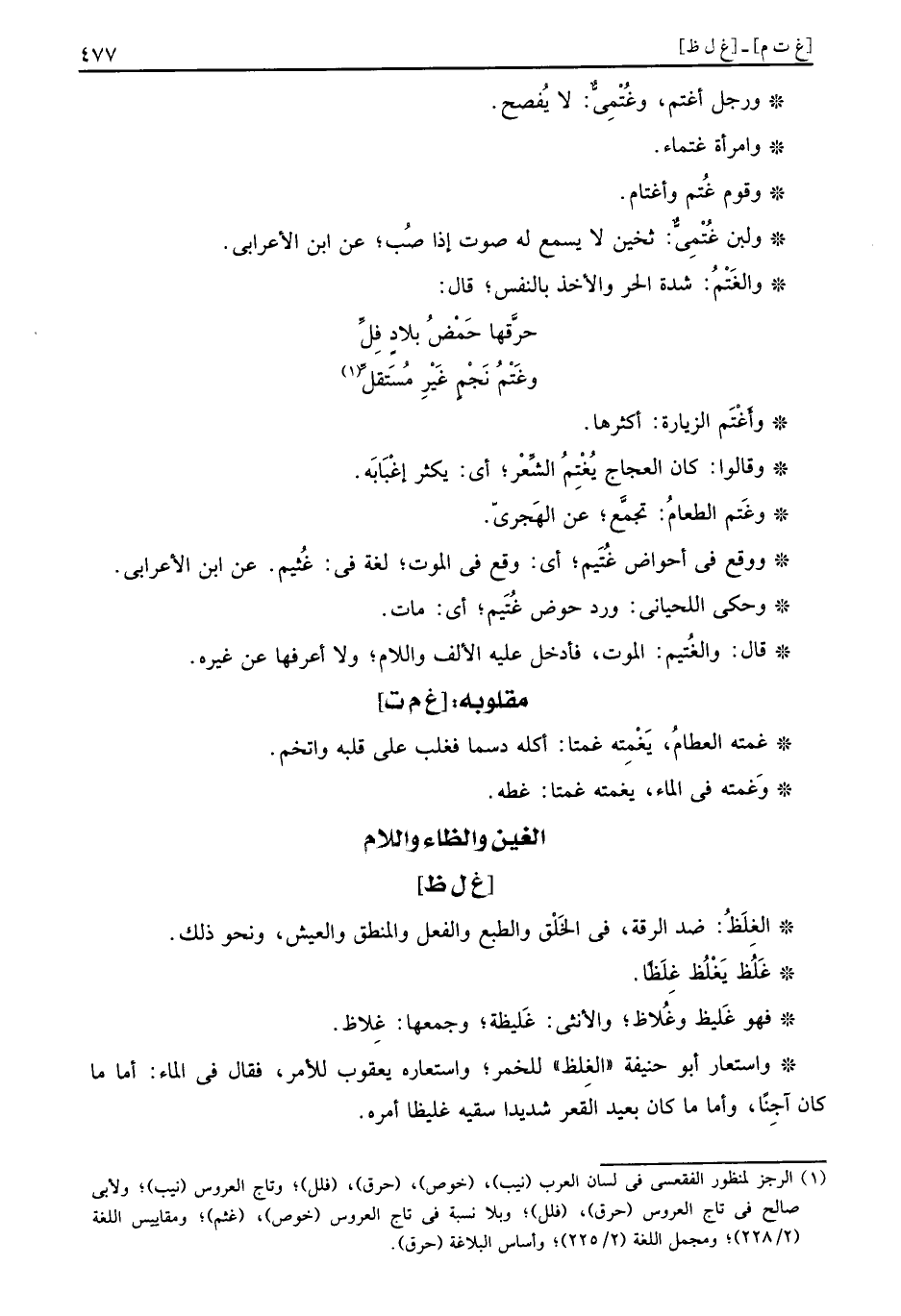 وَوَقع فِي احواض غُتَيم، أَي: وَقع فِي الْمَوْت، لُغَة فِي: غُثَيم. عَن ابْن الْأَعرَابِي.