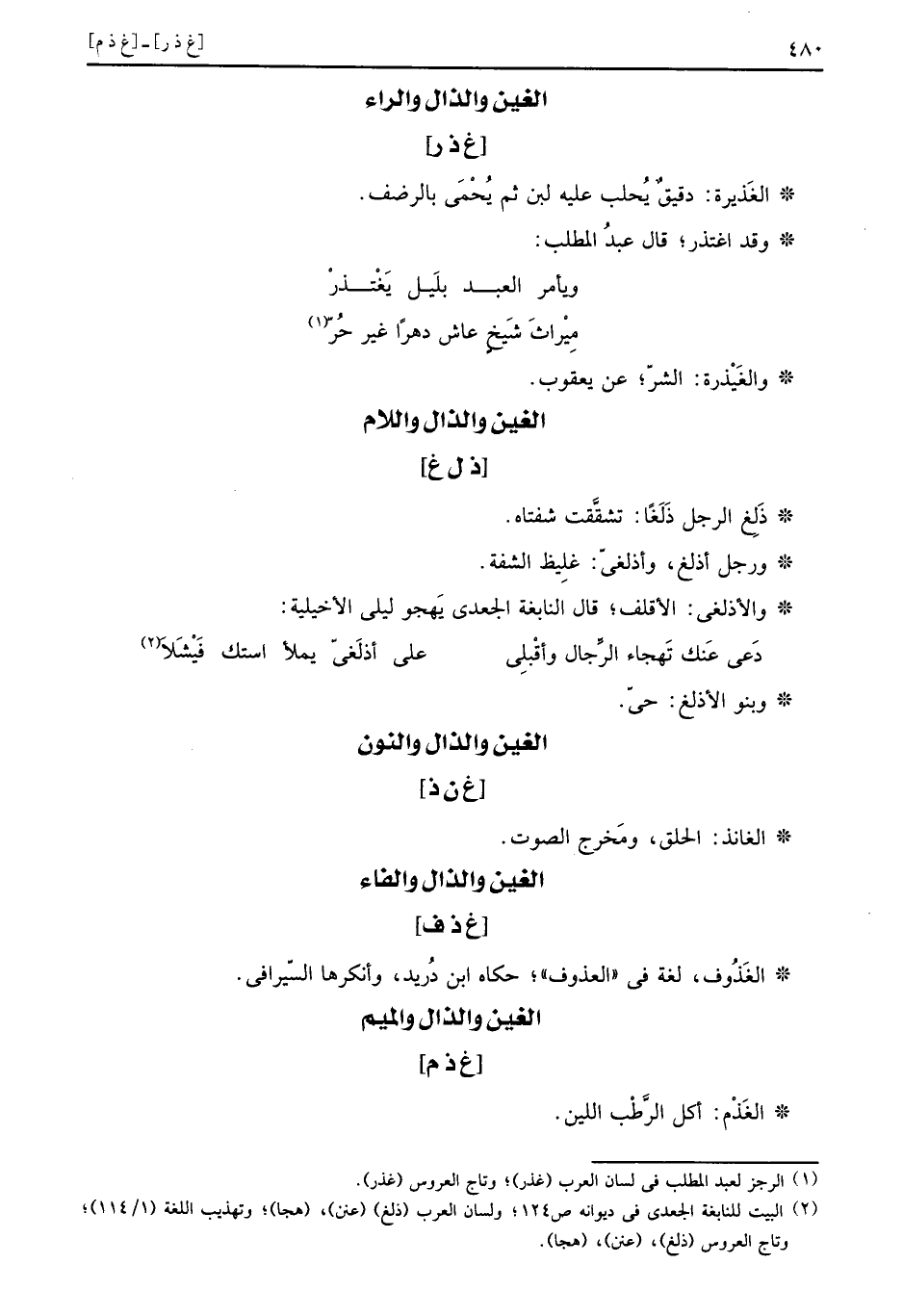 والاذلغى: الاقلف، قَالَ النَّابِغَة الْجَعْدِي يَهجو ليلى الاخيلية:
