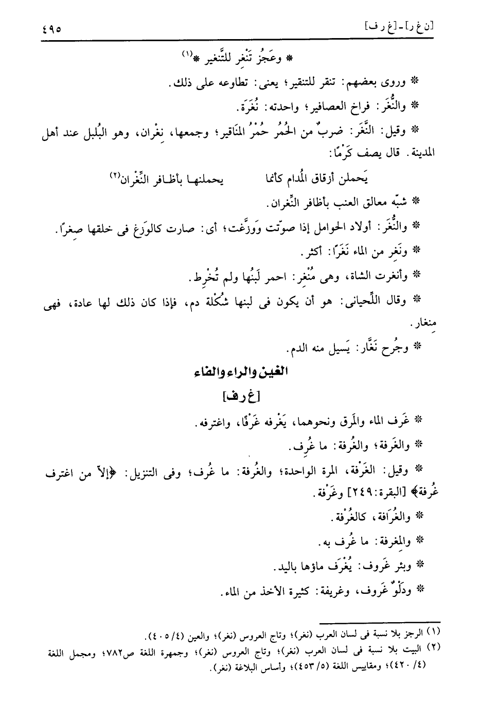 وعَجُز تَنْغر للتَّنْغير وروى بَعضهم: تنقر للتنقير، يَعْنِي: تطاوعه على ذَلِك.