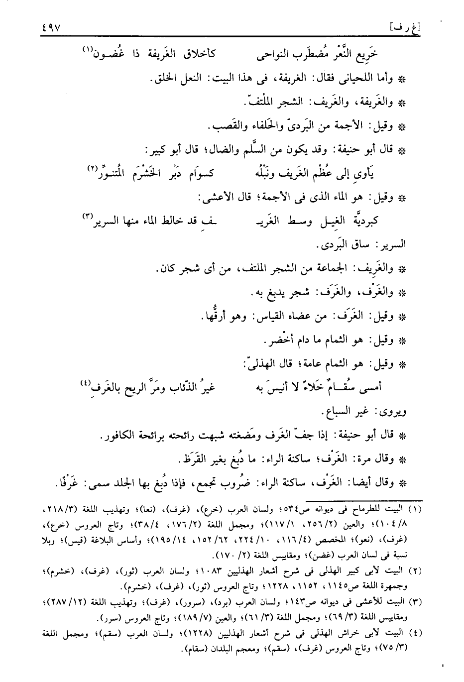 وَقَالَ أَيْضا: الغَرْف، سَاكِنة الرَّاء: ضُروب تجمع، فَإِذا دُبغ بهَا الْجلد سمي: غَرْفاً.