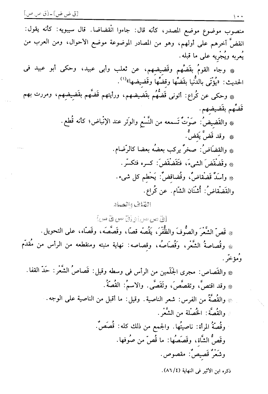 وَجَاء الْقَوْم بقضهم وقضيضهم، عَن ثَعْلَب وَأبي عبيد، وَحكى أَبُو عبيد فِي الحَدِيث: " يُؤْتى بالدنيا بقضها وقضها وقضيضها ".