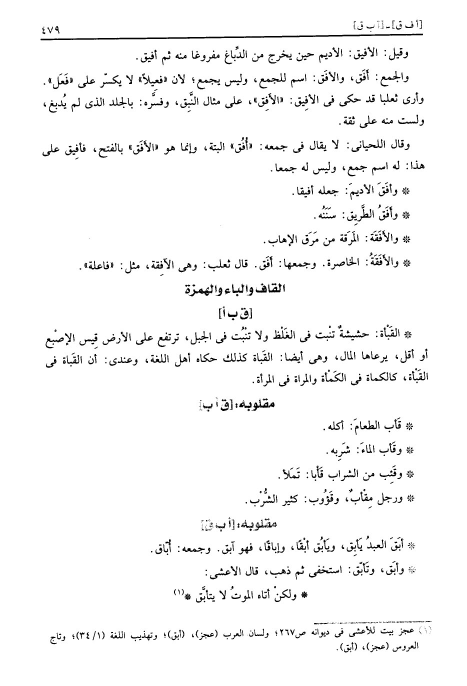 وَأرى ثعلبا قد حكى فِي الافيق: " الْأُفق "، على مَال النبق، وَفَسرهُ: بِالْجلدِ الَّذِي لم يدبغ، وَلست مِنْهُ على ثِقَة.