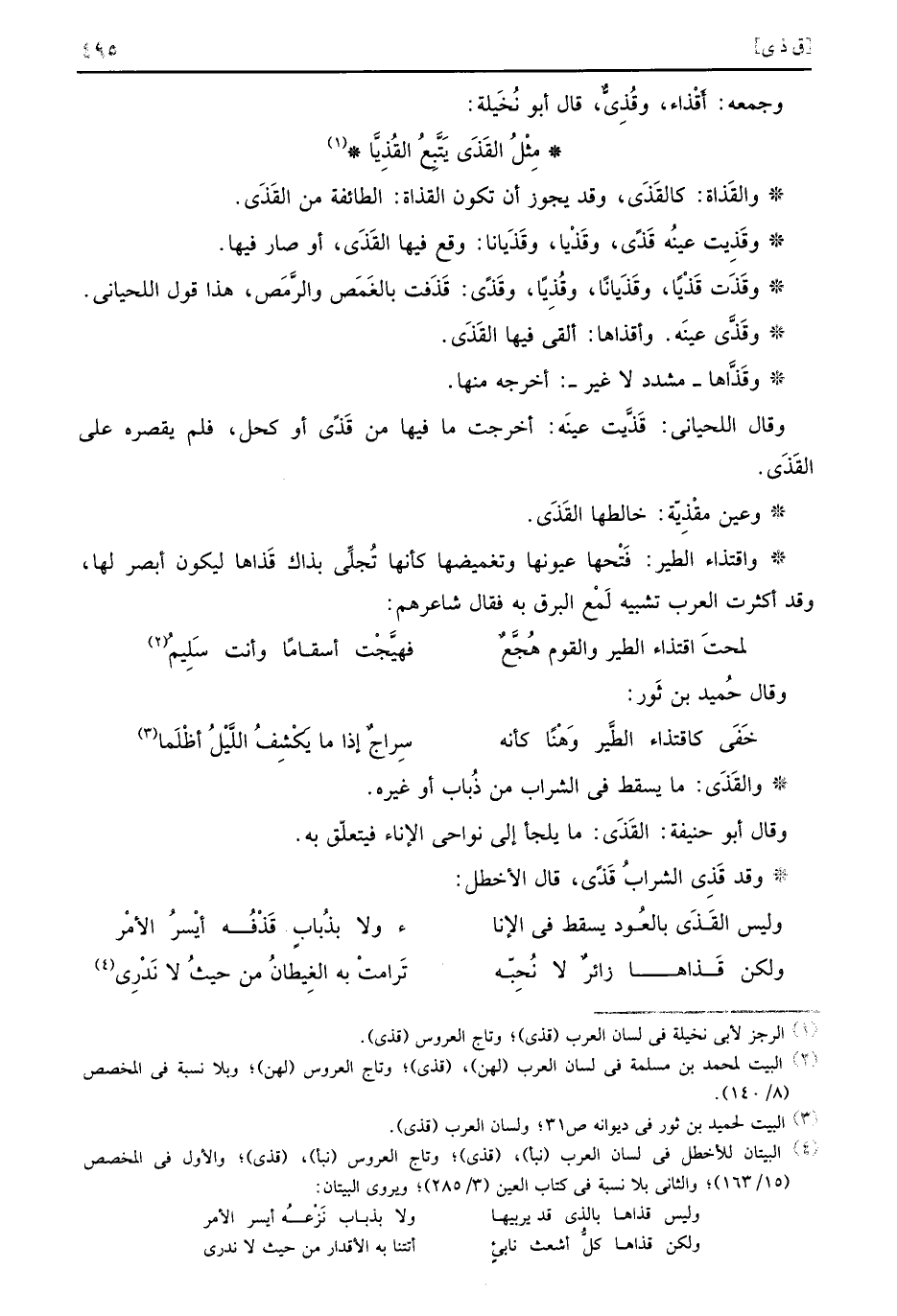 وَجمعه: أقذاء، وقذى، قَالَ أَبُو نخيلة: