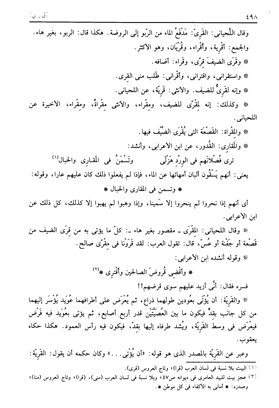 وَإنَّهُ لقرى للضيف، وَالْأُنْثَى: قَرْيَة، عَن اللحياني.