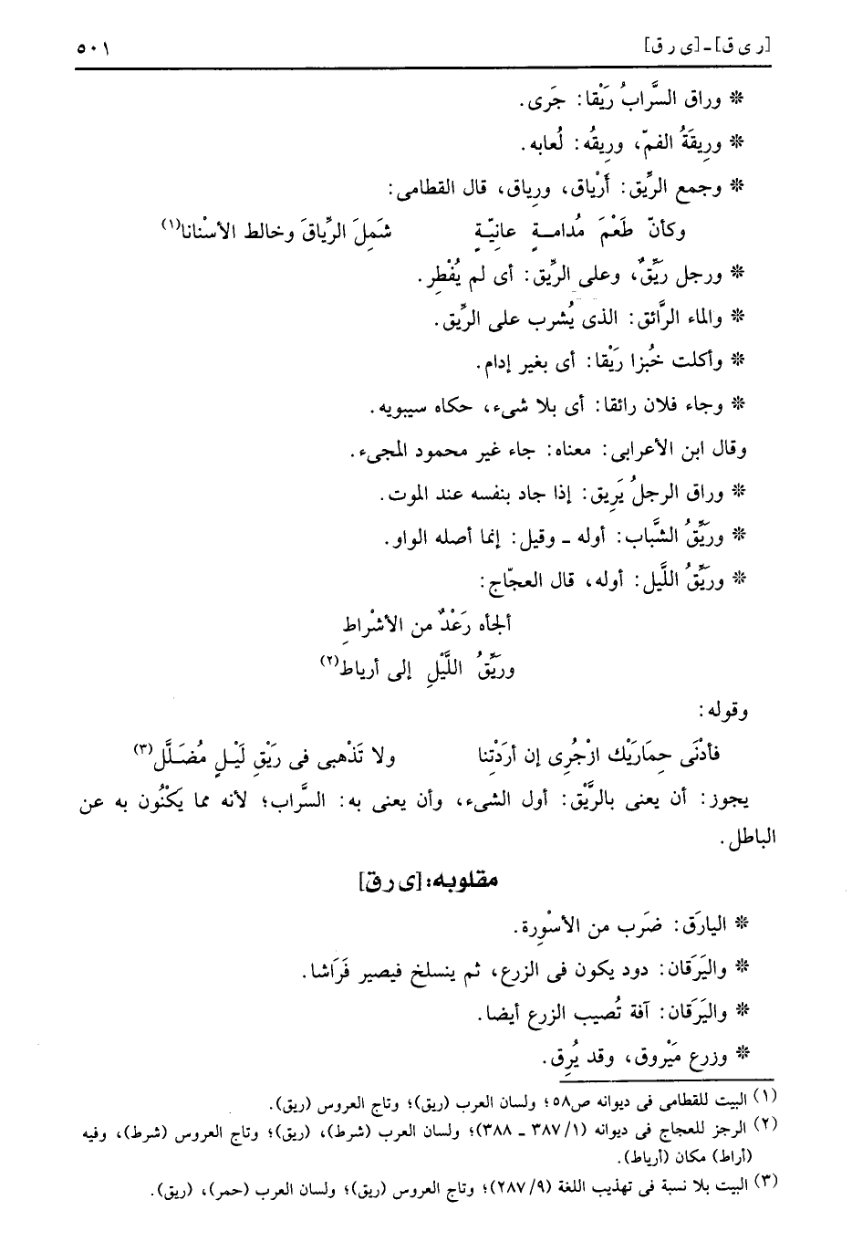 وَجمع الرياق: أرياق، ورياق، قَالَ الْقطَامِي: