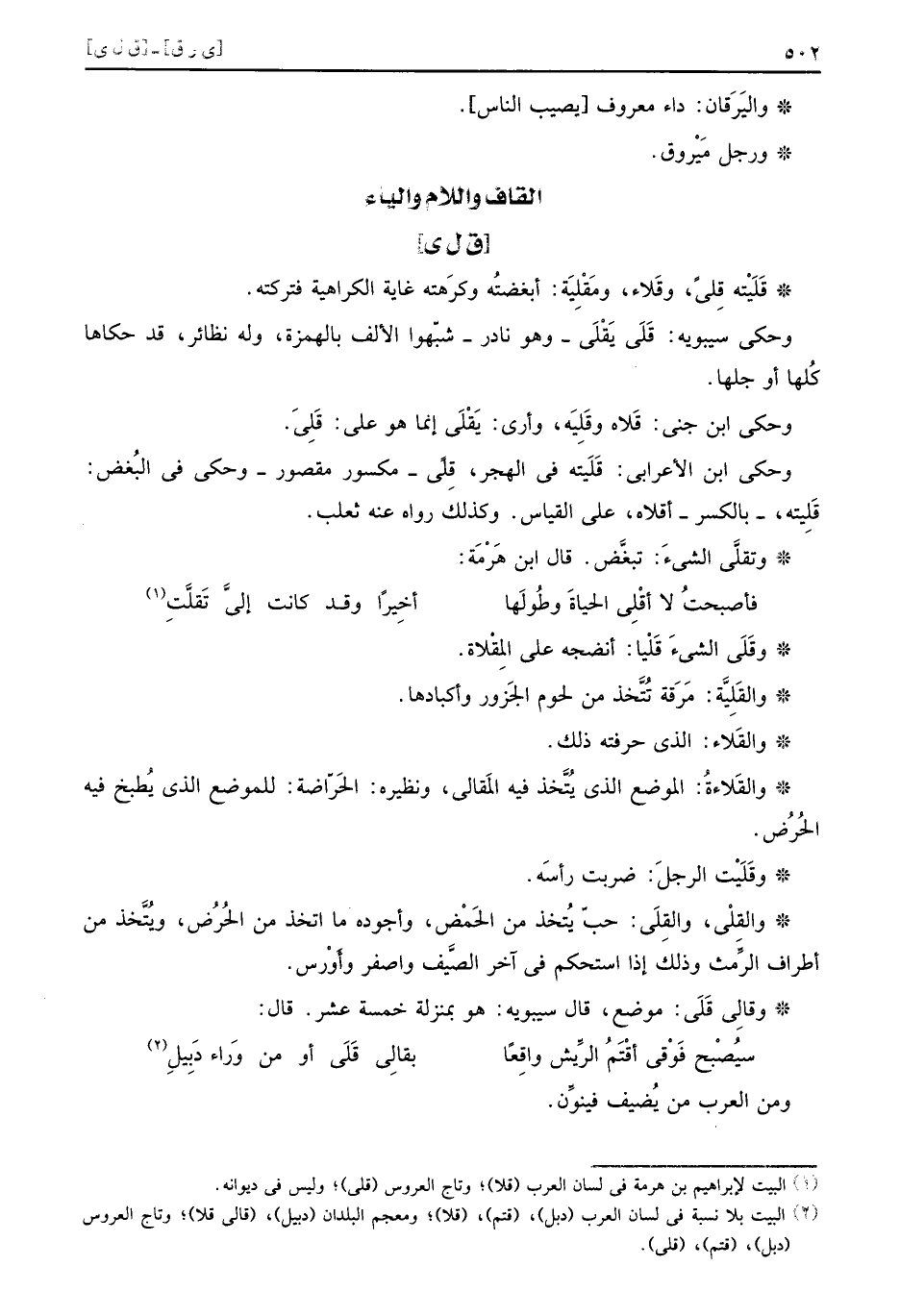 وَحكى ابْن الْأَعرَابِي: قليته فِي الهجر، قلى، مكسور مَقْصُور، وَحكى فِي البغض: قليته، بِالْكَسْرِ، اقلاه، على الْقيَاس. وَكَذَلِكَ رَوَاهُ عَنهُ ثَعْلَب.
