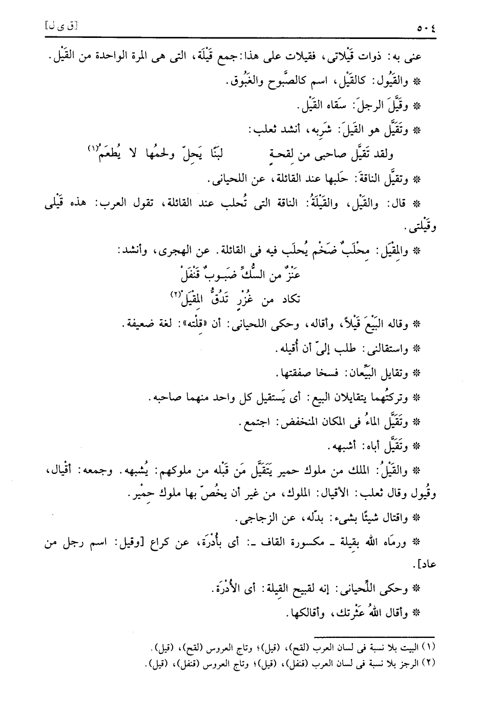 وتقيل هُوَ القيل: شربه، انشد ثَعْلَب: