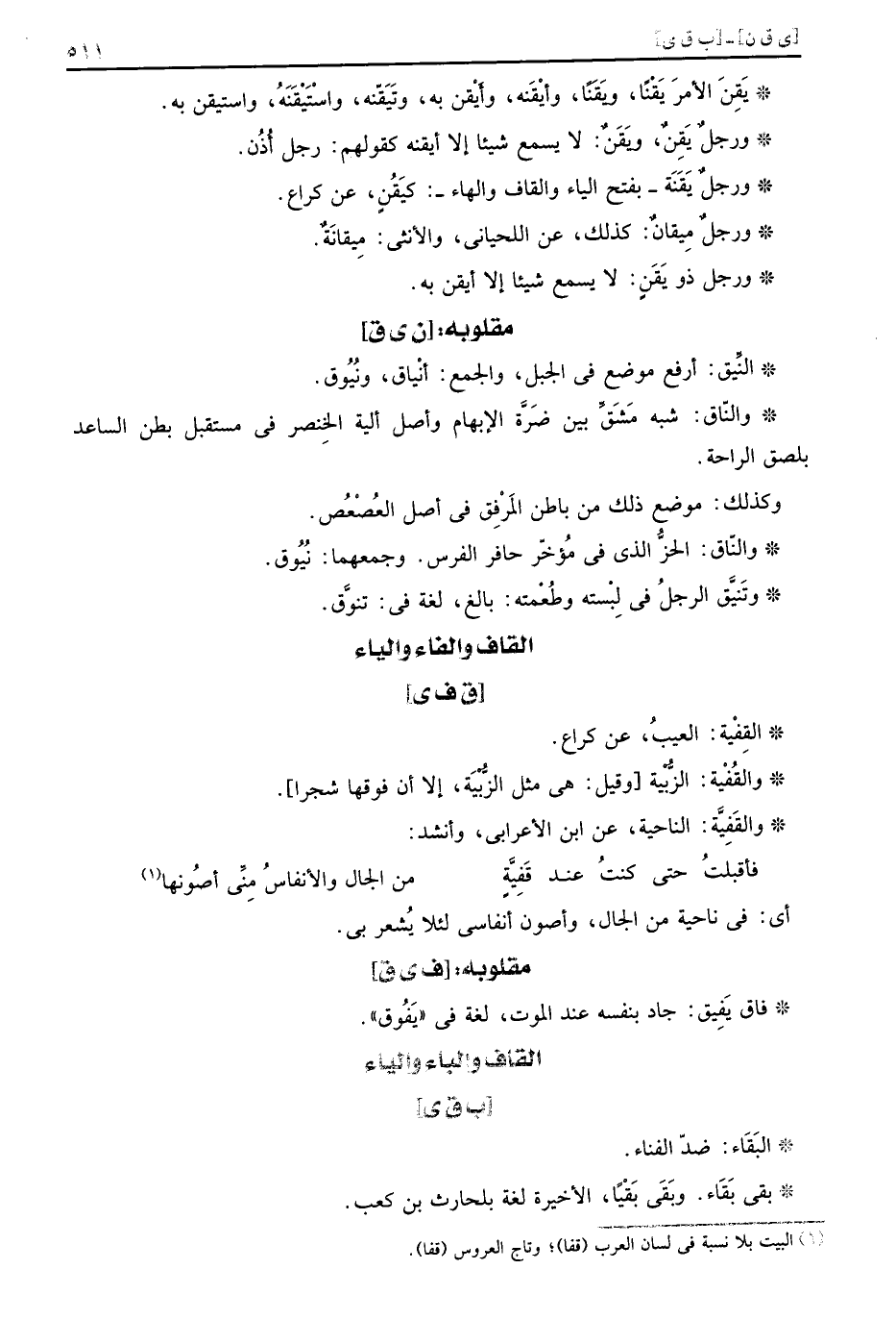 والقفية: النَّاحِيَة، عَن ابْن الْأَعرَابِي، وانشد: