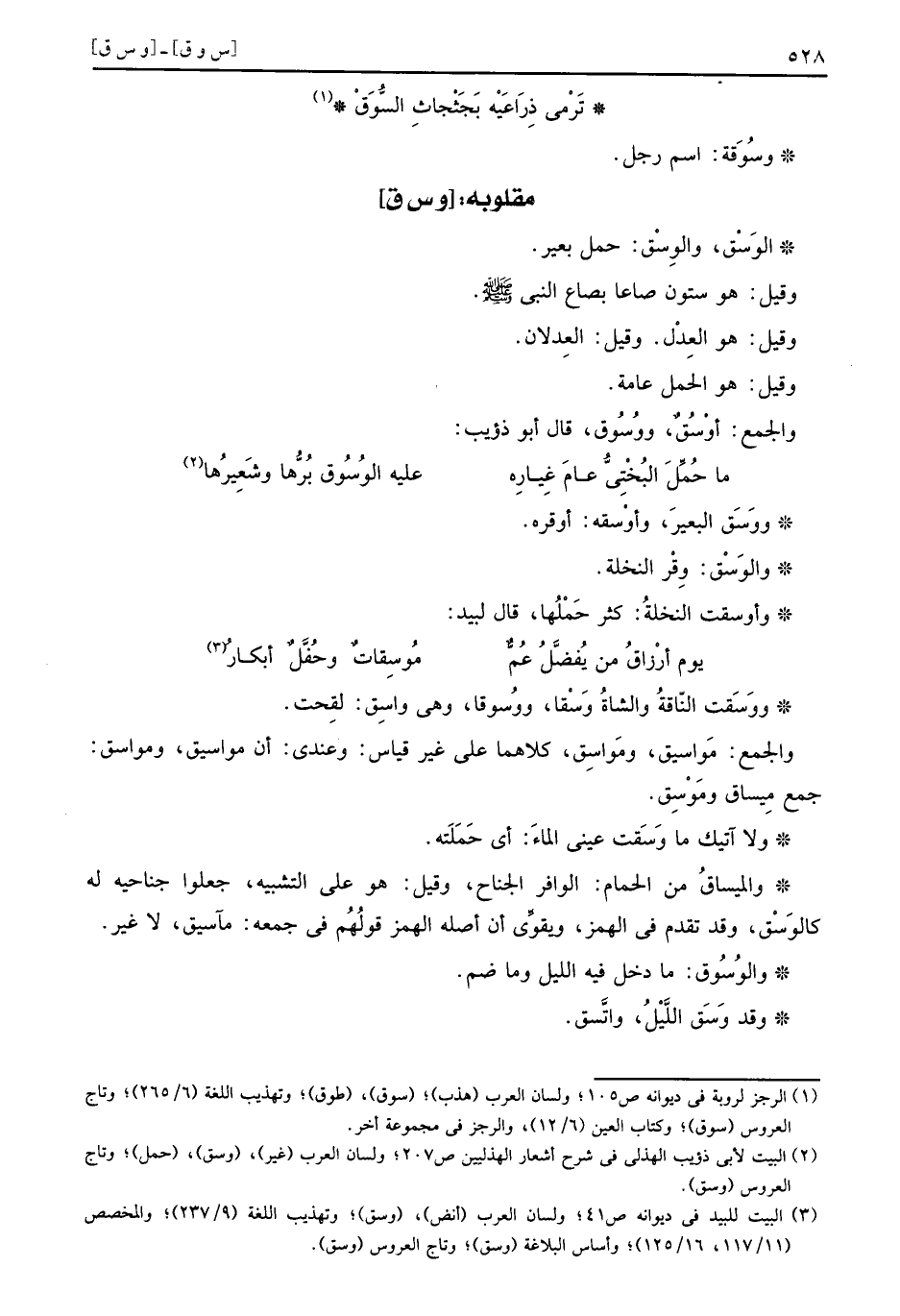 وَالْجمع: أوسق، ووسوق، قَالَ أَبُو ذُؤَيْب: