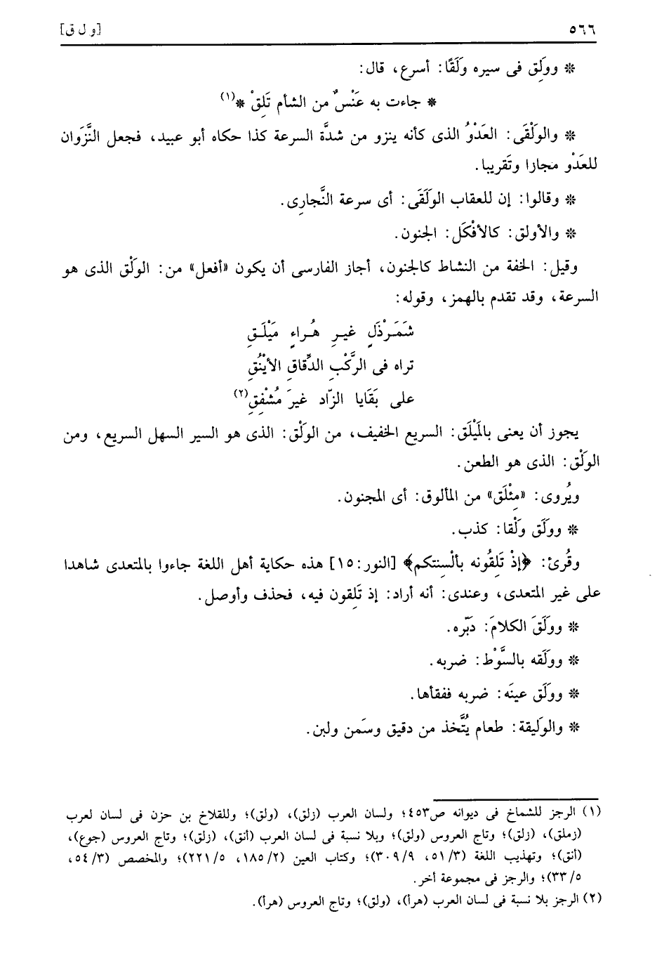 وولق فِي سيره ولقاً: اسرع، قَالَ: