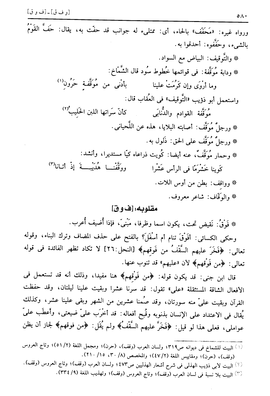 وَاسْتعْمل أَبُو ذُؤَيْب " التَّوْقِيف " فِي الْعقَاب قَالَ: