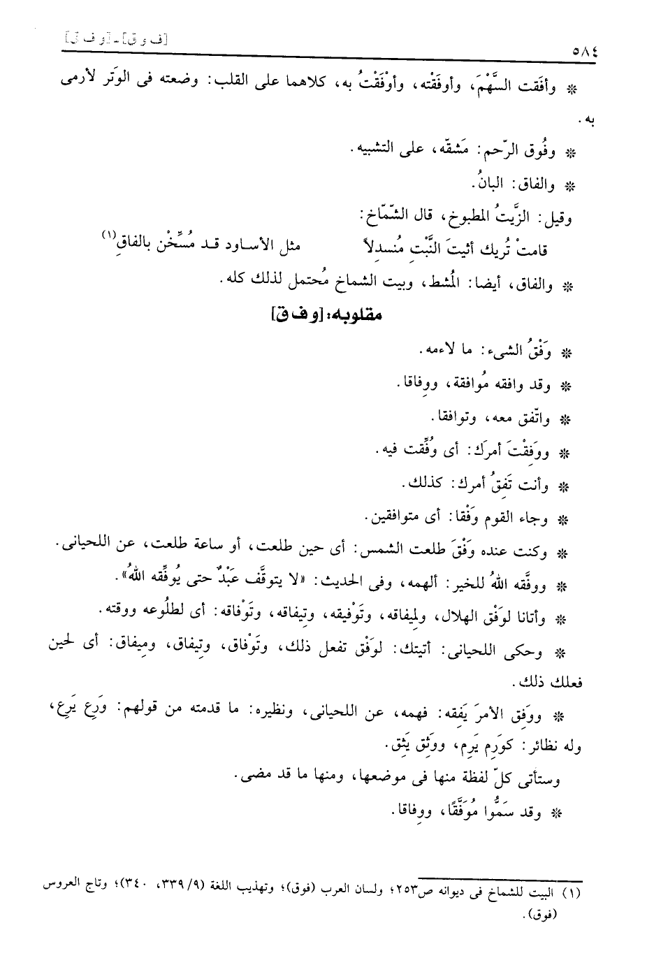 مقلوبه: (وف ق)