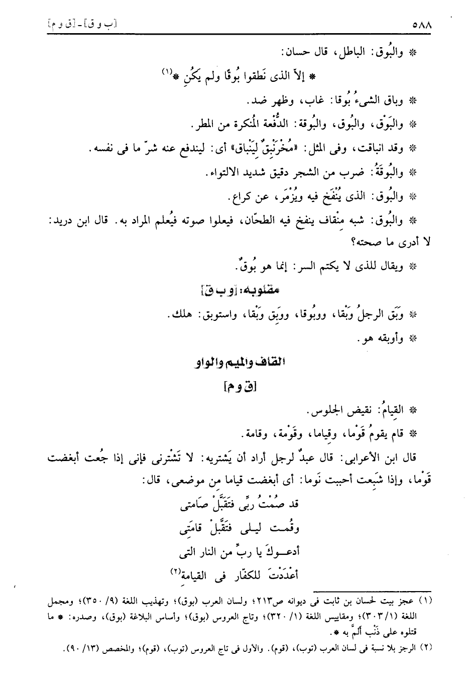 وباق الشَّيْء بوقا: غَابَ، وَظهر، ضد.